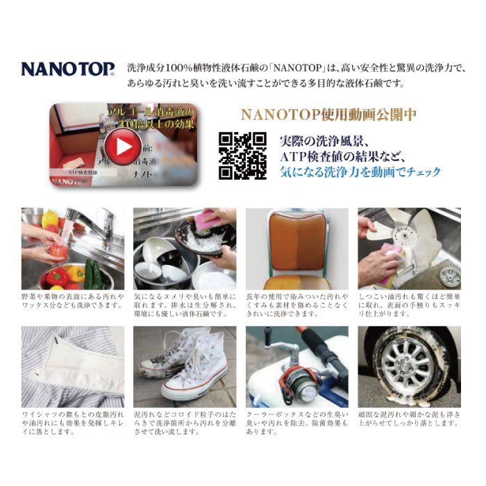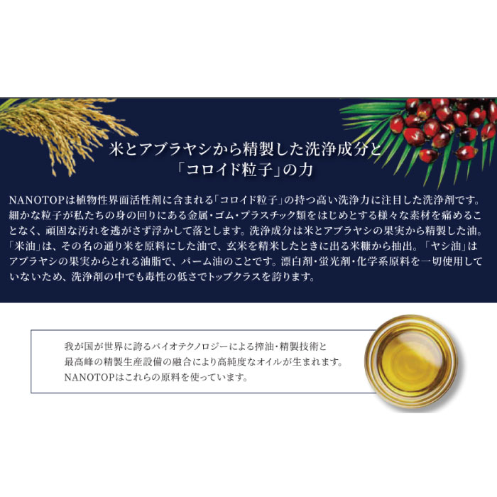 「コロイド粒子」の力で頑固な汚れを浮かせて落とす 植物性液体石鹸 NANOTOP 洗浄成分100%植物性