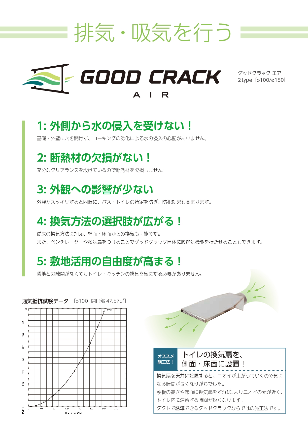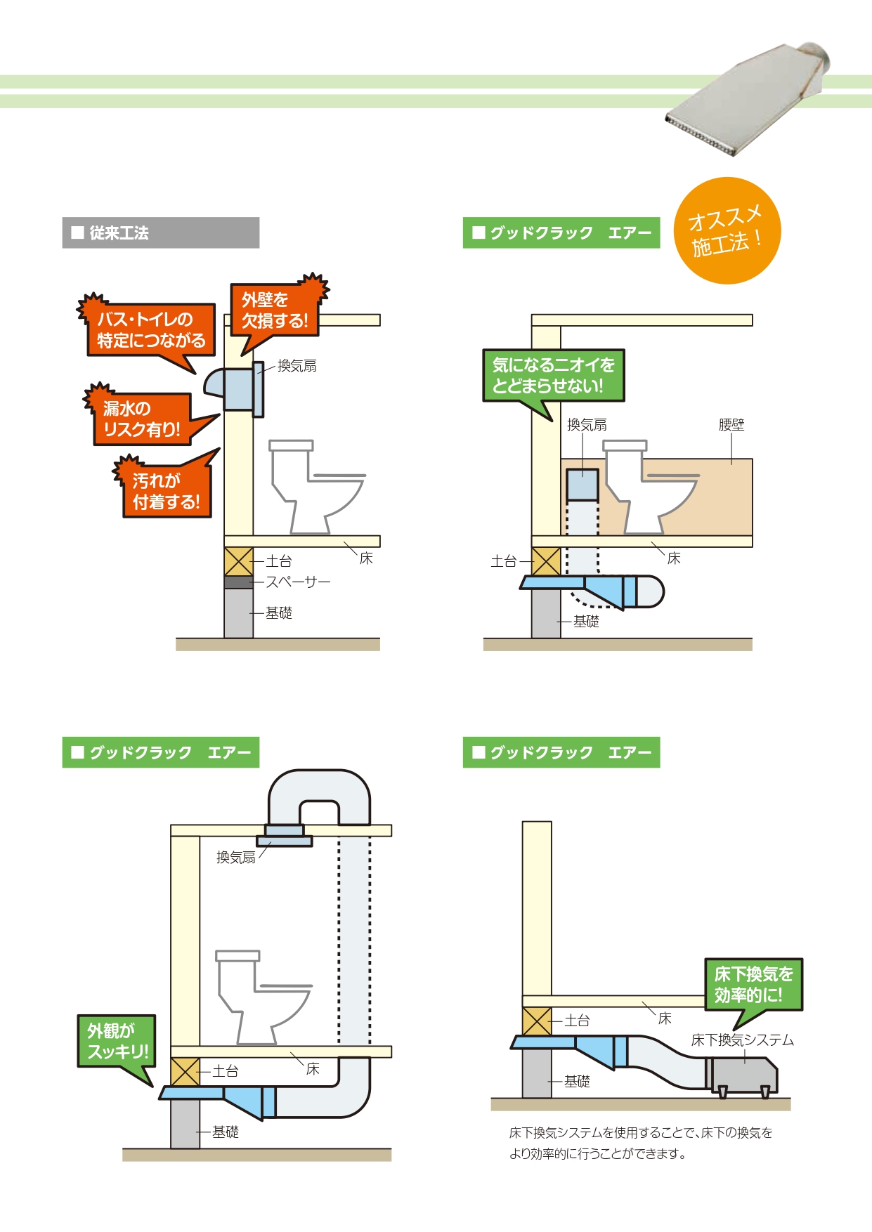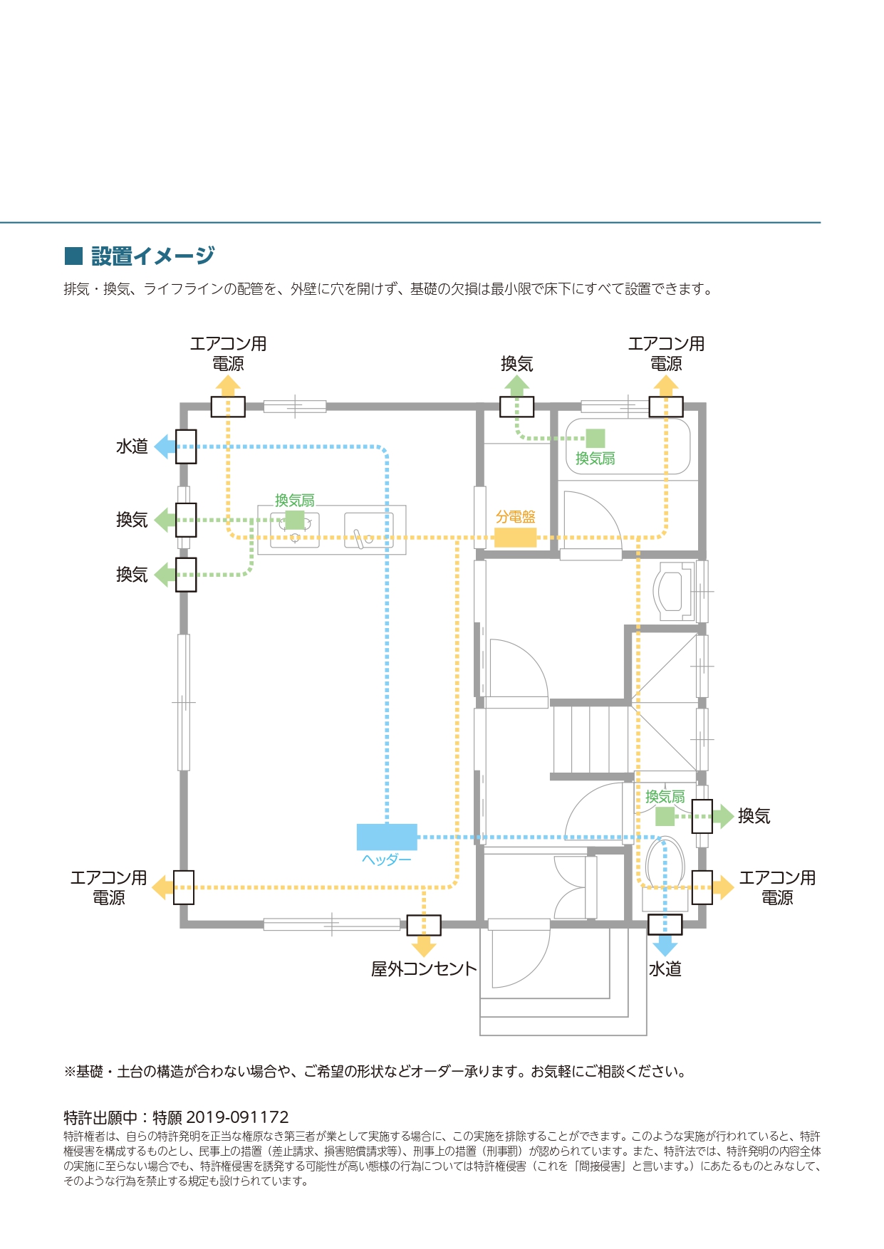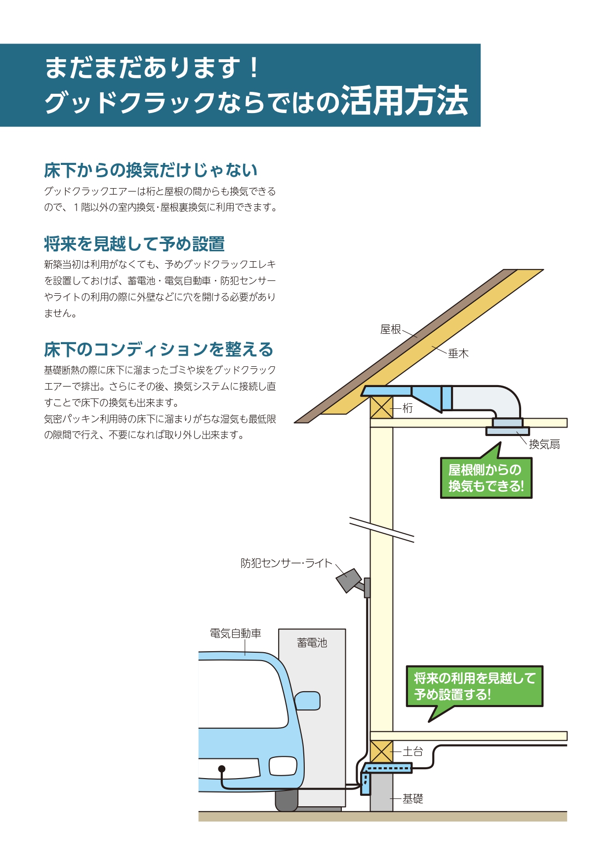 • 家に穴を開けず、基礎と土台の間に空気を通す!