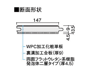 表面:WPC加工、天然木薄単板、UV抗菌耐磨耗マットコート仕上げ