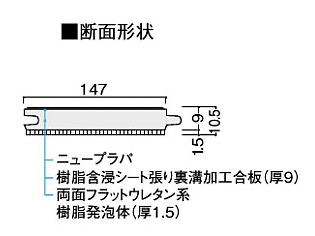 表面:ニュープラパ(特殊加工化粧シート)、UV抗菌耐磨耗ファインコート仕上げ