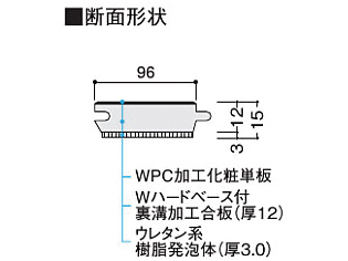 表面:WPC加工、天然木薄単板(板目・柾目混合乱尺張り)、UV抗菌耐磨耗仕上げ