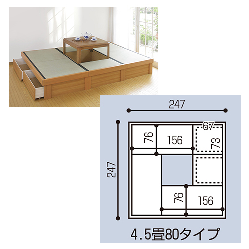 極東産機 特殊機能畳 堀こたつユニット 団欒 4.5畳80タイプ へりなし T313742 2470×2470mm 高さ330mm