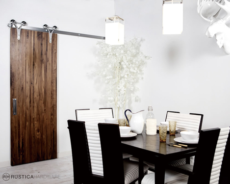 近年はインテリアアイテムとしてレールに意匠性を持たせ、欧米でも大変人気の高いドア用ハードウェアです。