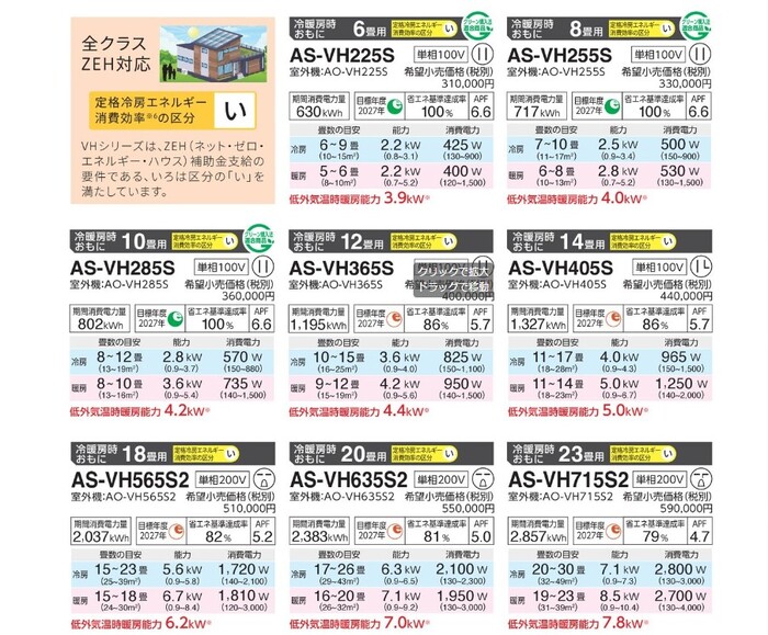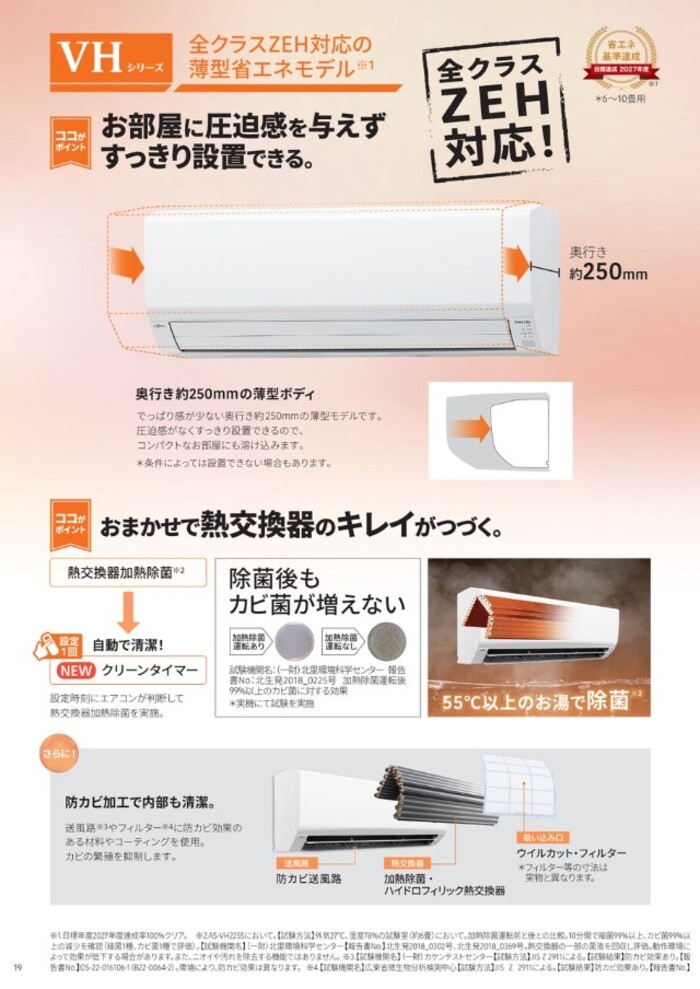 富士通ゼネラル インバーター冷暖房エアコン 「ノクリア」 VHシリーズの説明
