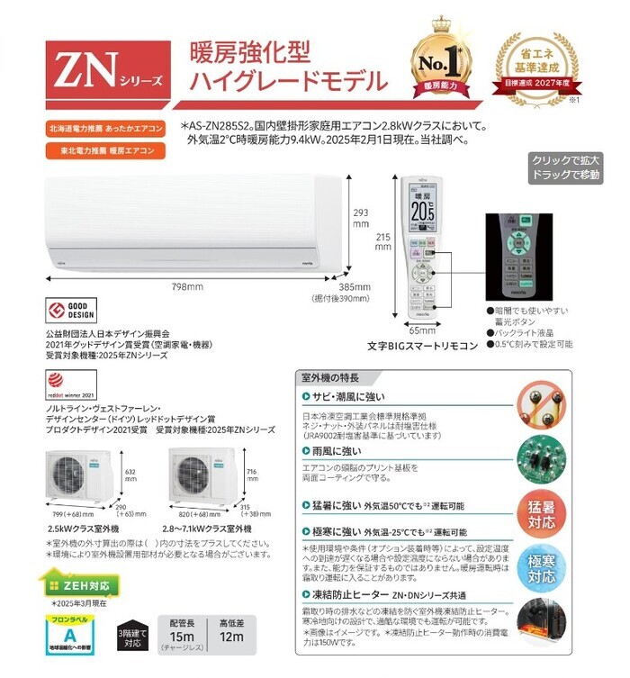 富士通ゼネラル 暖房強化型エアコン 「ゴク暖ノクリア」ZNシリーズ