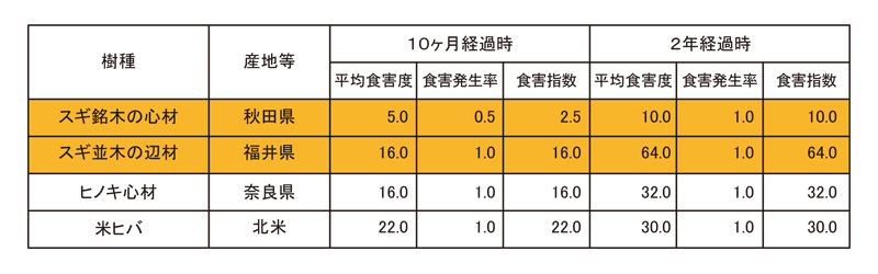 奈良県森林技術研究センター 研究報告 No.37「スギ材の耐蟻牲について」(2008) より