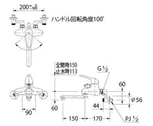 水栓金具の吐水高と併せて、事前に図面にてご確認ください。