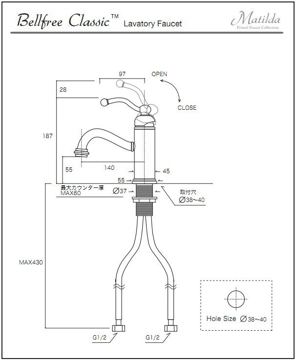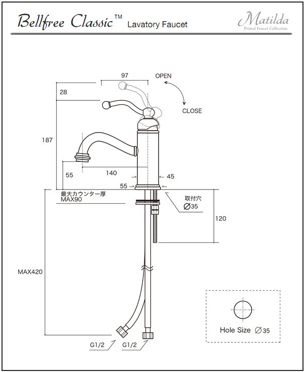 Matilda(マチルダ) 水栓金具 混合水栓 ベルフリー・クラシックPNの説明
