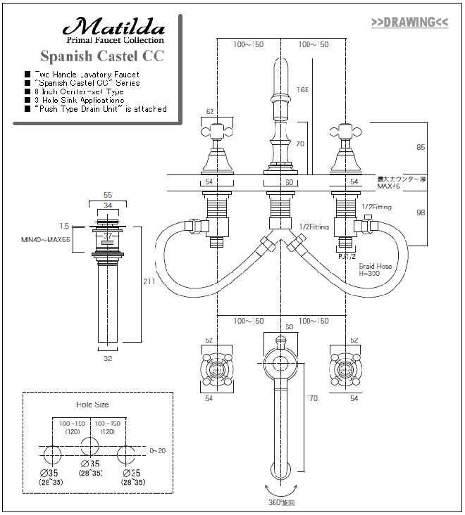 Matilda(マチルダ) 水栓金具 混合水栓 スパニッシュ・キャッスルCC-BNの説明