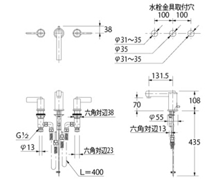 水栓金具の吐水高と併せて、事前に図面にてご確認ください。