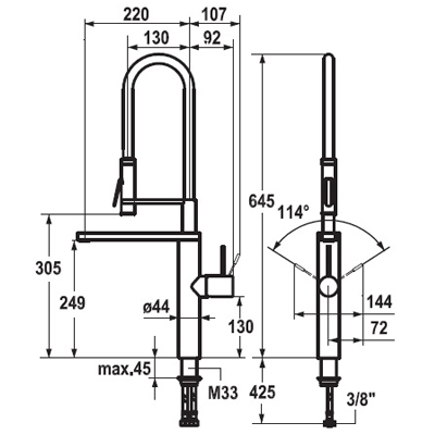 水栓金具 シングルレバーキッチン混合水栓 KWC ONO HIGHFLEX 10.151.423.000 クロームの説明