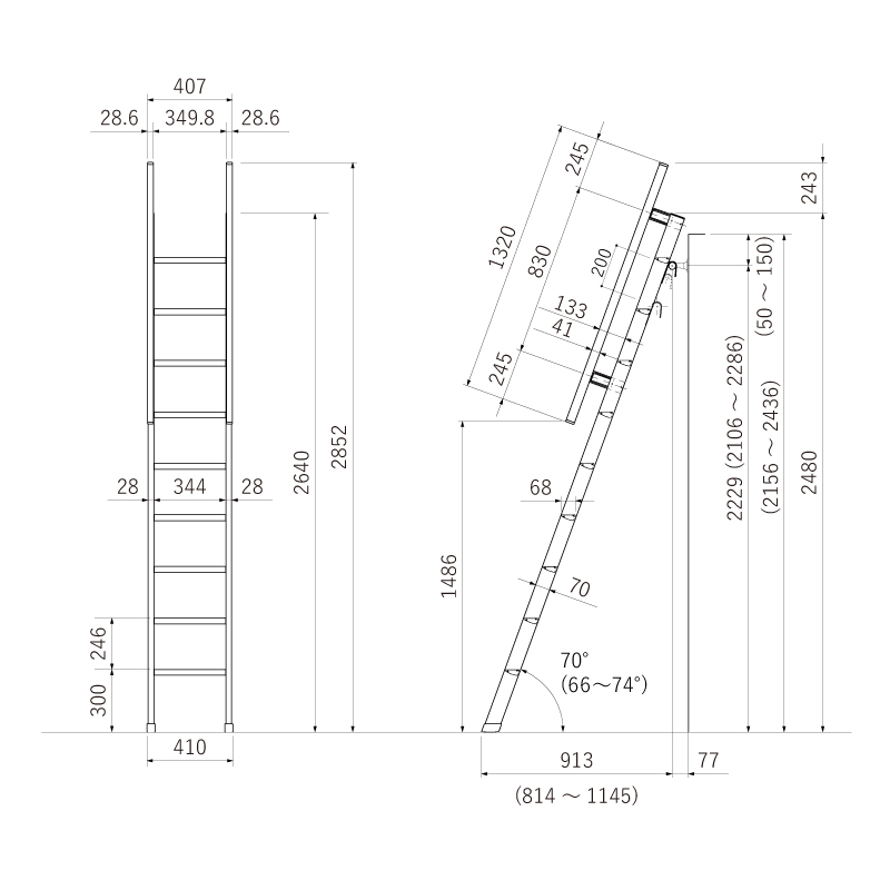 ロフトはしご ルカーノラダー アルミ製ロフトはしご 正面手すり仕様 ホワイト塗装 金具セット 9段