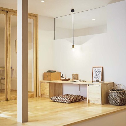 • 作りつけのような木の収納は、お部屋のインテリアとしても素敵なアクセントに