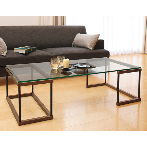 ガラス天板ならではの透明感と、加工性に優れた素材を有効に活かしたアルテジャパンのリビングテーブル。