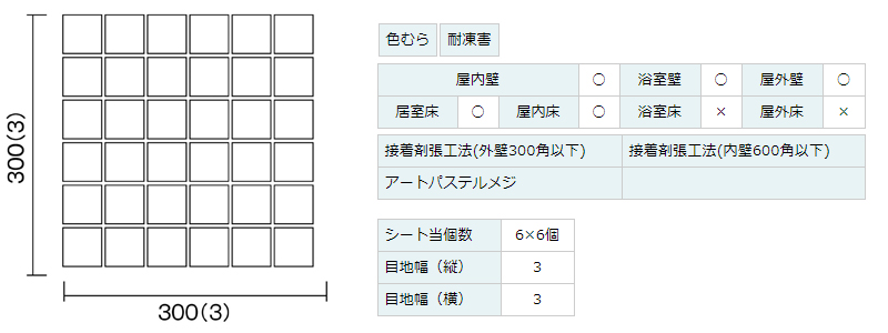 内装用目地材は名古屋モザイク「アートパステルメジ」をご使用ください。