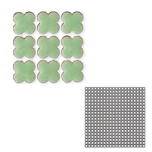 - 手作り感のあるふっくらとした面状と、小さな花の形がかわいいモザイクタイル