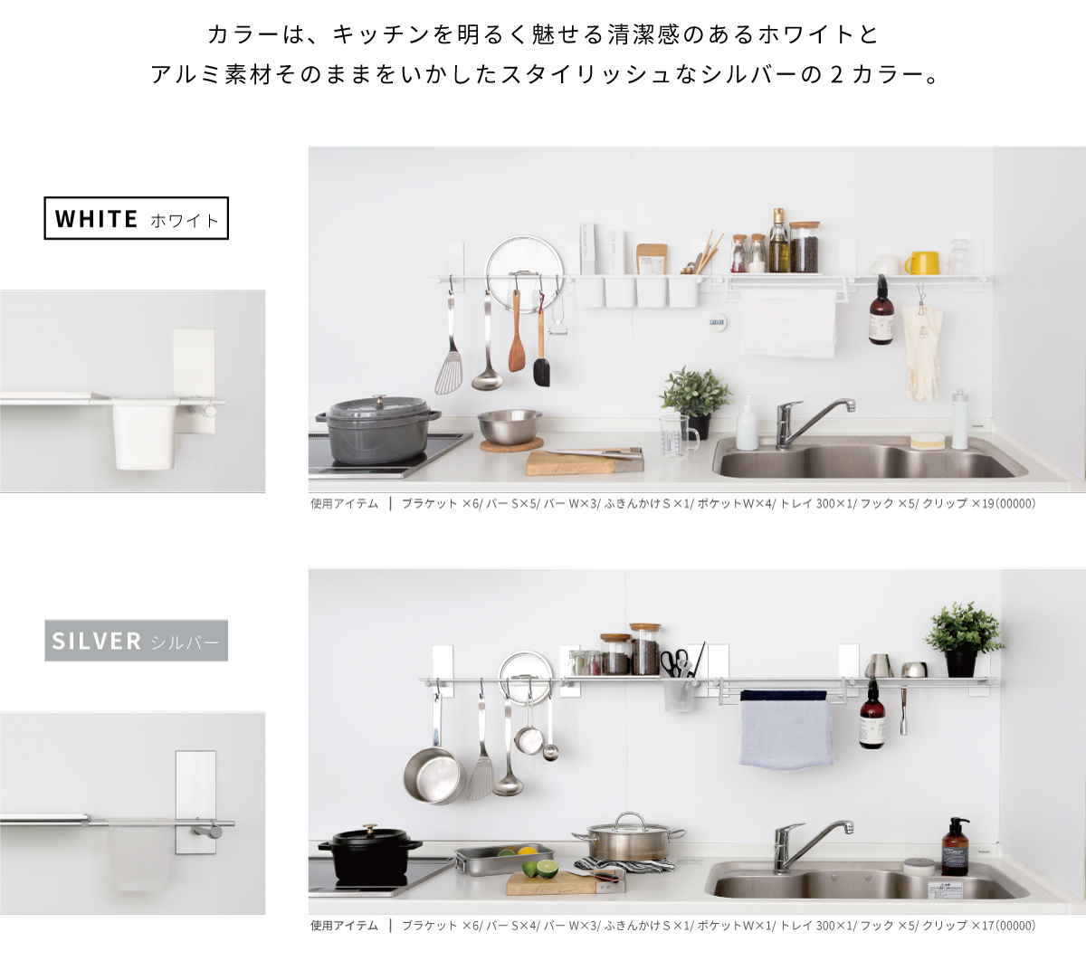セット内容:ブラケット×2/バーS×1/クリップ×5/フック×3