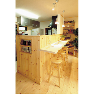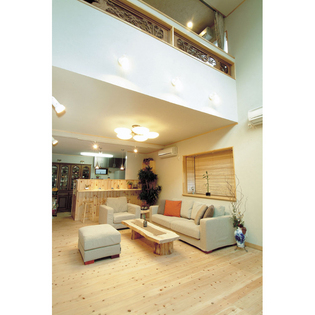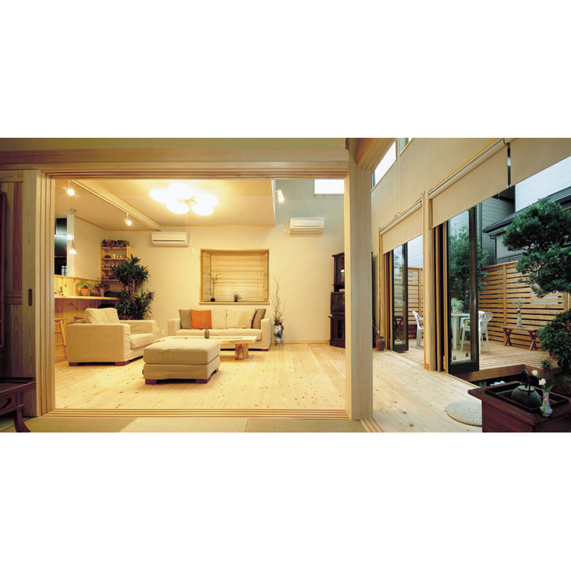 LDKと和室はフルオープンにできる建具で仕切り、自由に使い分けられるように。洋室化した2階も同様の間取りとしています。壁に珪藻土やアッシュライト、床には無垢・無塗装の国産ヒノキやキリなどを用いたほか、部屋をセルロースファイバー(古新聞が原料の天然断熱材。不燃)でくるむことで冷暖房効果および防音効果も向上。明るい日差しときれいな空気が満ちる住まいで、K様一家の新生活がはじまります。