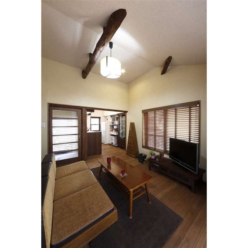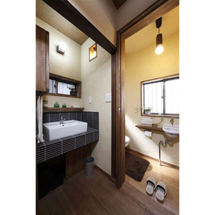 子供の頃によく遊びに行った、大好きな祖父の家を譲り受けることになった30代のお孫様ご夫婦。築65年で手を加えなければいけない構造体以外は、なるべく祖父との思い出を大切にされたいとご要望でリフォーム。まず、昭和の雰囲気が味わえる素材、インテリアを提案。リフォーム前は土壁だったため、LDは珪藻土を、床材や建具は暖かな温もりを感じやすい桐へ。長い年月を経て、黒光りした既存の柱に合わせて、深い茶色の自然塗装を使用。空間を少しでも広く感じるよう、3mの天井高を確保。梁を見せて古民家の味わいを深めました。屋外にあった浴室を、広々とした脱衣場のある屋内の浴室に変更し、快適さと祖父との思い出が詰まった空間へ。