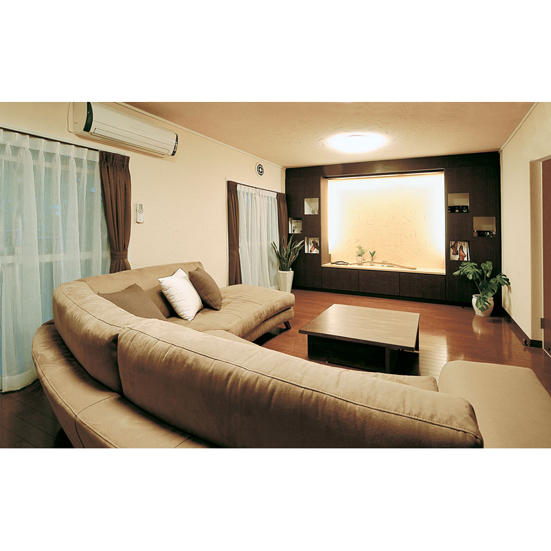 M様ご一家が、リフォーム直後だけではなく将来にわたって安全に住み続けられるよう、使用する無添加素材を吟味しました。リフォーム前のリビングなどは、カビがひどかったので、健康に配慮してセルロースファイバーで断熱し、壁や天井に珪藻土を使用して結露や湿気を防止しカビ対策を行いました。