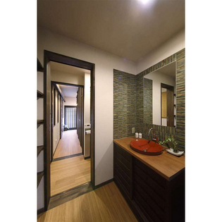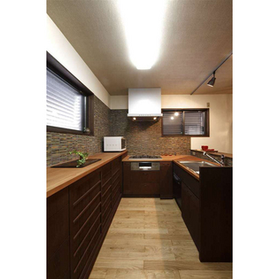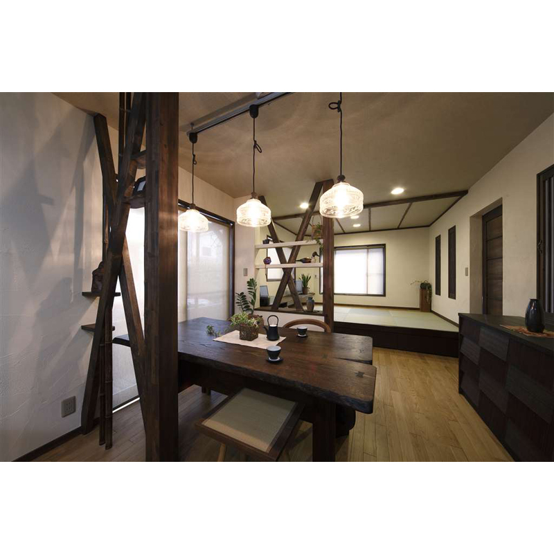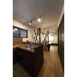 お仕事の定年を機に、家にかけられる時間が出来たことと、家に居る時間を大切にしたいという想いが重なり、居心地良く落ち着いた雰囲気を持ち、人が集まれる空間にしたい、というご希望でフルリフォームをされることになりました。和のデザインを取り入れ、水平・垂直ラインを強調し、家全体に高さと奥行き感を出しました。3室に仕切られていた1階は玄関を移設し、長手方向に階段、廊下を繋げたことにより、LDKの縦長の空間に。少人数・大人数にもフレキシブルに対応できる間取りです。全体にカラーはダーク調で統一し、しっとりとした落ち着きを出しました。外観はモダンな町屋をイメージし、和のデザインを大事にしました。