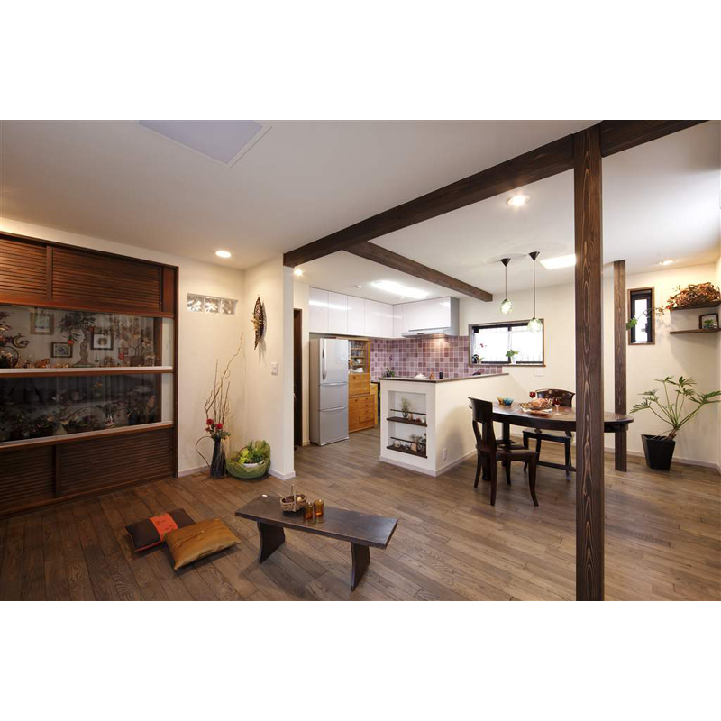 世帯を分けた子供達が築いた新たな家族。孫を引き連れ、いつでも遊びに来て、ゆったり団欒できる空間がほしい。中断していた趣味のアートフラワーも復活したい。暗くて寒いDKを光り溢れる空間に。但し、外部からの目線は配慮してほしいとの希望でリフォーム。