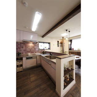 今までは家族のためのDKとして機能していたが、これからの住まい方のシンボルとして、キッチンを開放し、リビングダイニングをつなげた。そのため広さを確保するためだけでなく、自然光を有効に取り入れるための工夫として、南面を増築。趣味のアートフラワーも存分に愉しんでいただける空間に。より近くなった庭での草花の手入れも大好きな時間として。イン&アウト満喫を叶える空間としてセカンドライフの充実を実現。