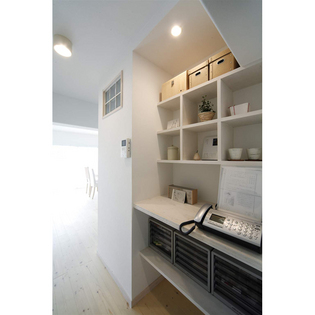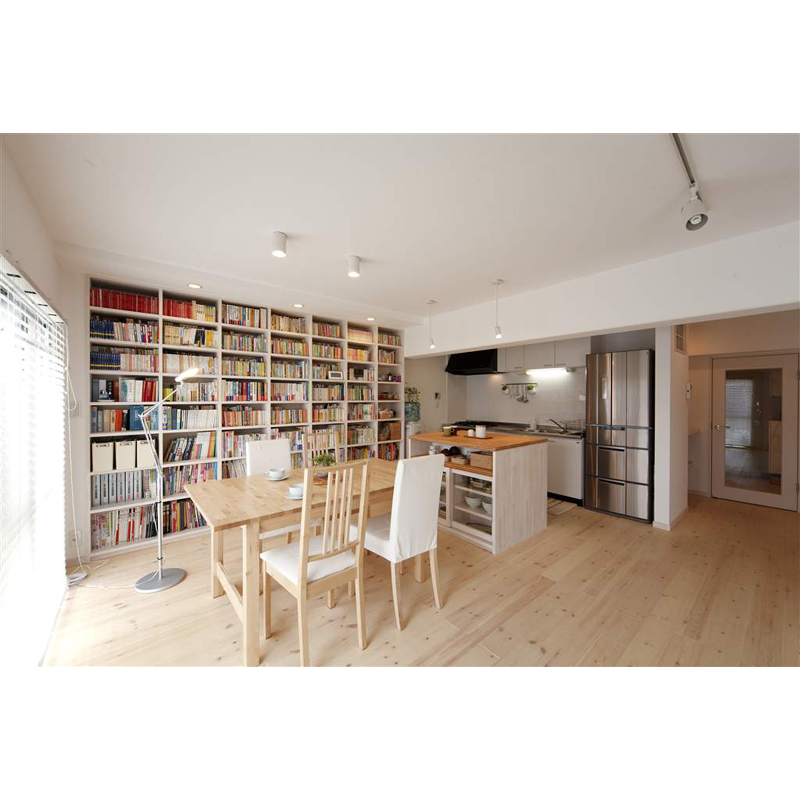 お仕事で600冊前後ある本の収納場所に苦労されていましたが、壁面に天井までの本棚を造作し、一箇所にまとめたことで本の管理もしやすく、読みたい時にいつでも簡単に取り出せるようになりました。