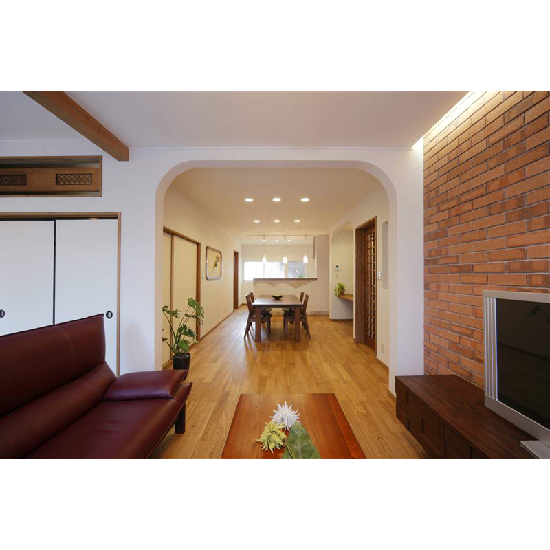 既存住宅と、新しいものを融合させるリフォーム。お部屋を分断していたハッチを撤去し、光と風と視線が抜ける広々と明るい空間を実現した。
