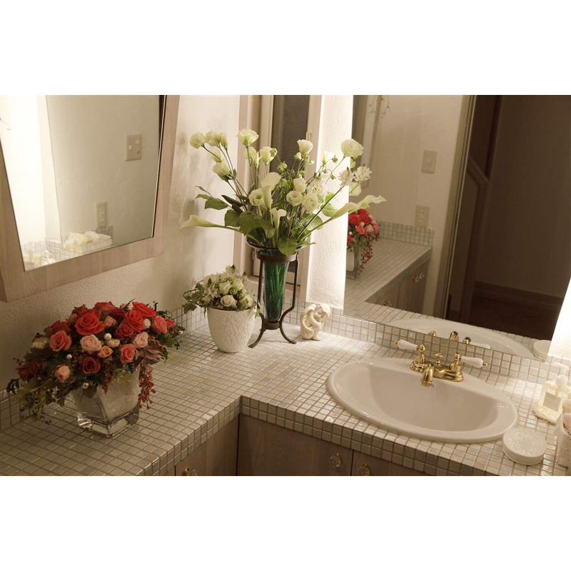 ご自宅で『フラワーアレンジメント教室』を開く予定でしたので、洗面やトイレは生徒さん達も利用するパブリックスペースとして、女性のためのくつろぎ空間に変身。ご家族間で使用する生活雑貨は出し入れも簡単な、鏡収納で見た目もスッキリ。また、以前は、車1台分のスペースしかなかった駐車場も、庭の一部を削り、生徒さん達も駐車できるように拡大しました。