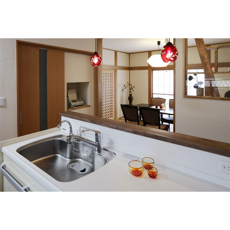 北側のキッチンと、玄関脇のリビングが、6帖の和室によって隔てられていたK様邸。