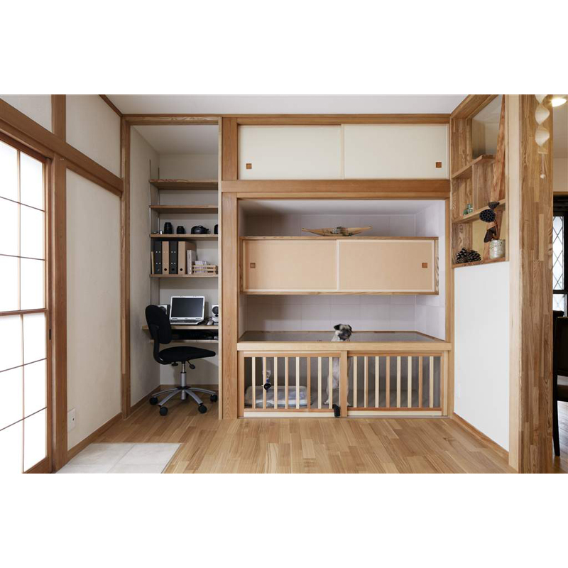 愛犬のパグのスペースも押入れ部分に新たに造作。愛犬スペースはダイニングとして使う部屋の中にあるため、エコカラットや珪藻土など脱臭効果のある素材を使用しました。