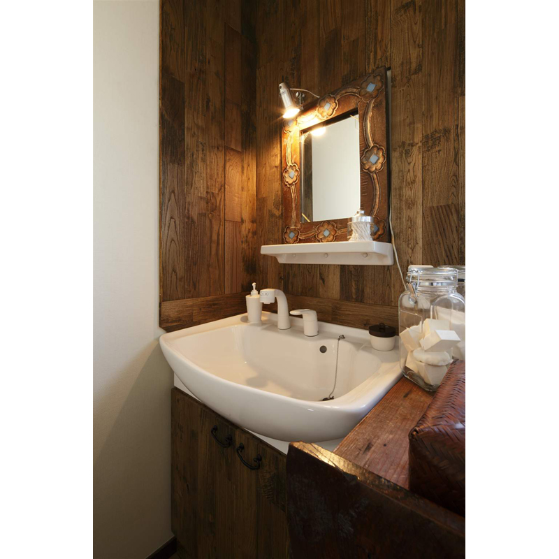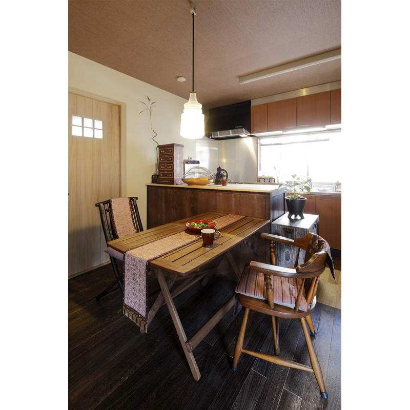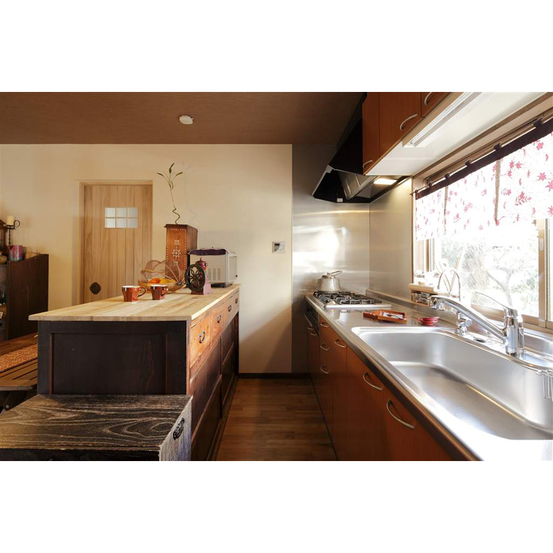 子世帯は、「華美にならない落ち着き感」をテーマに、古民具を随所に生かした間取りと内装色を配しました。得意のDIYで「手をかけていく」ことのできるきる空間として「未完成の美」にこだわりました。