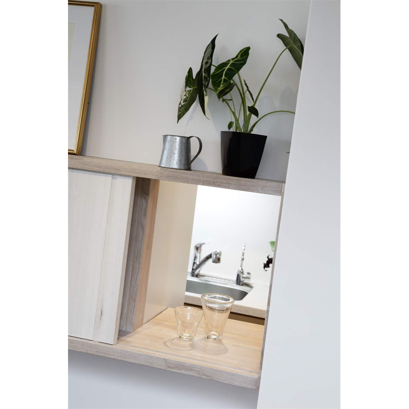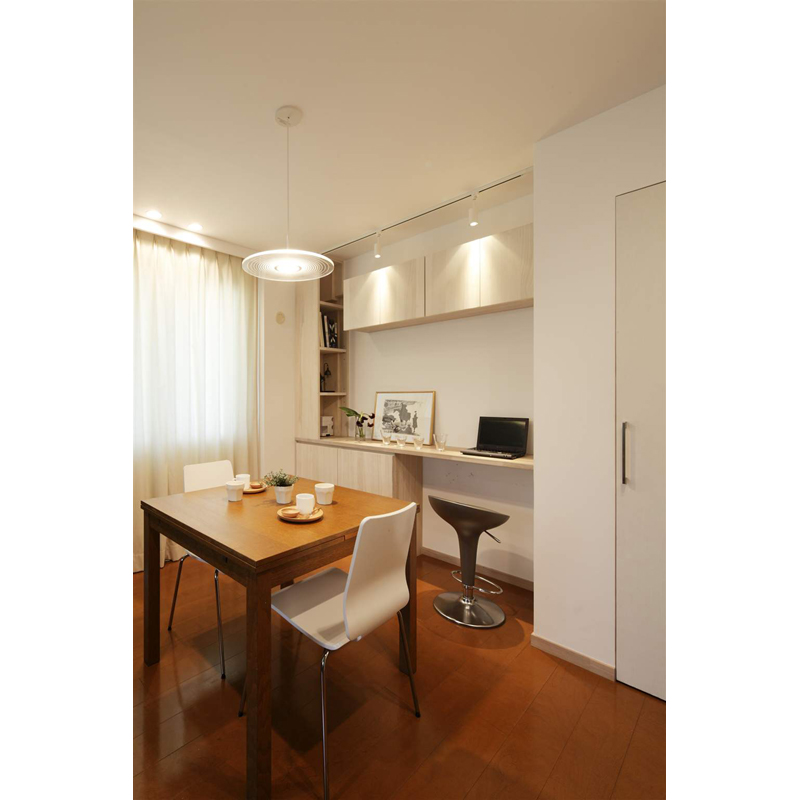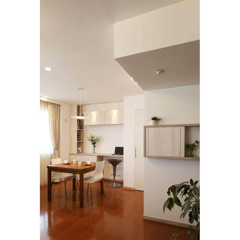 のっぺりとした日本住宅がしっくりこないということでしたので、クロスや照明、壁面収納を使いスッキリと、でも変化に富んだ住まいを実現。