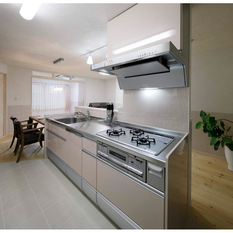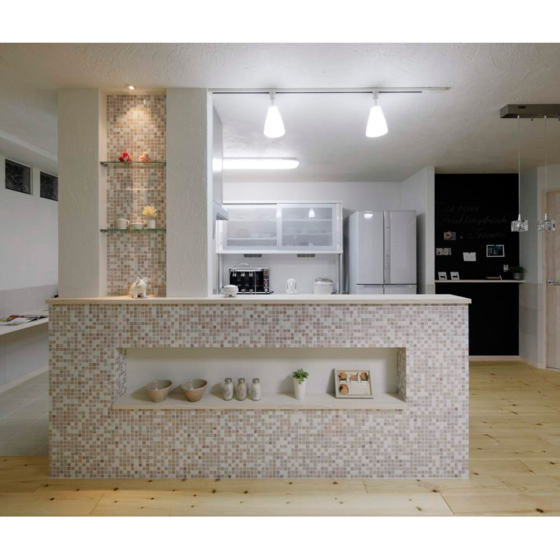デザインは、シンプルにホワイトを基調とし、奥様が好きなピンク色をキッチン廻りのタイルに取り入れて、アクセントとしました。