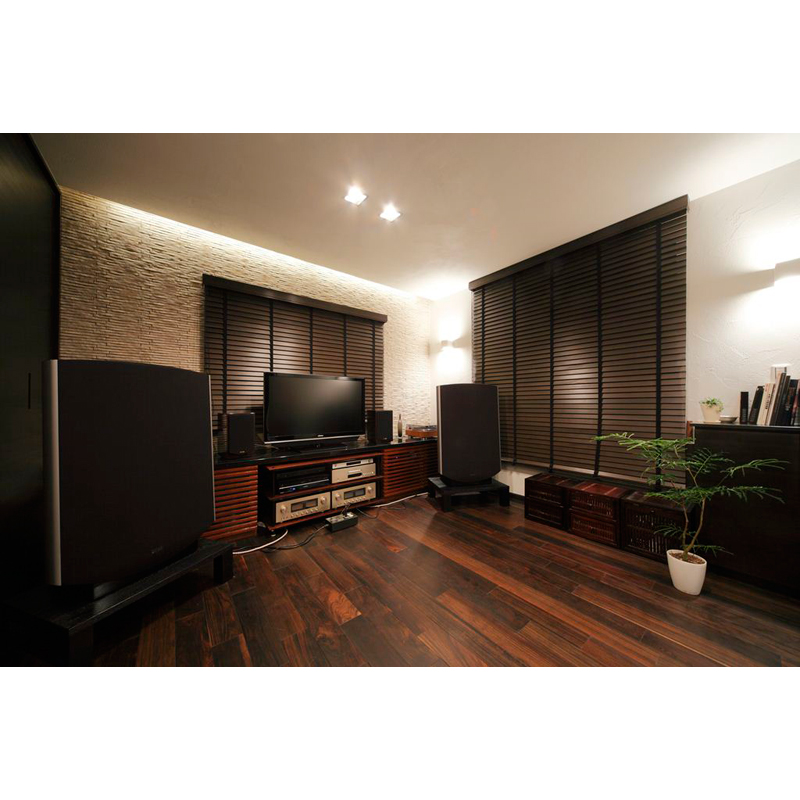 母屋のT様のお部屋はご趣味のオーディオを愉しむ為、無垢材を使いつつもシャープで都会的なイメージに。造作家具と間接照明が、オーディオの高級感をより引き立てます。