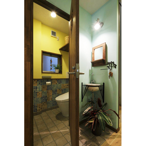 1Fはこれから高齢になられるお母様のために、階段の昇降を増やさないよう、洗面所、トイレ、浴室とお母様の寝室を設けました。