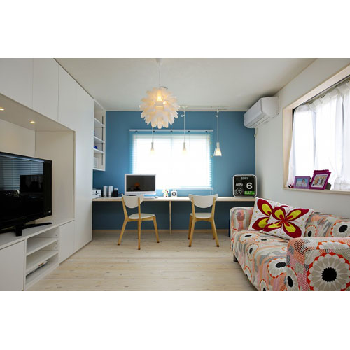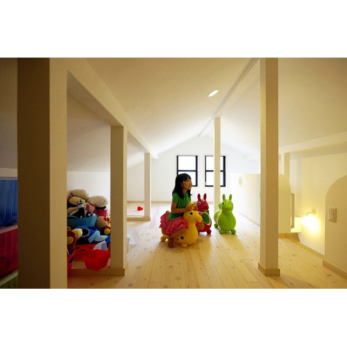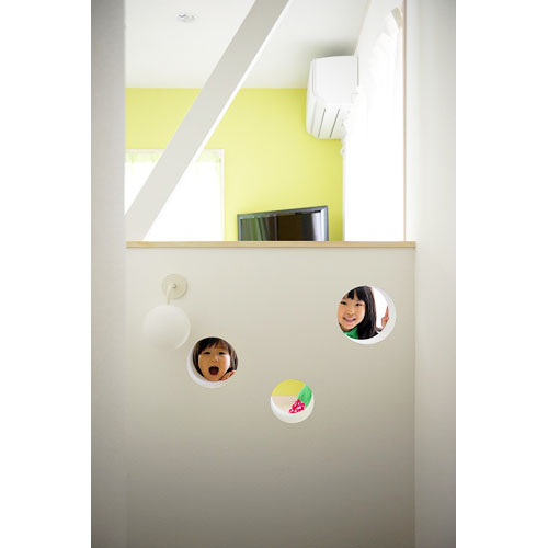 にぎやかで明るいY様ご一家。そんなご家族の持ち味を表すかのような明るい色使いや、丸開口などで遊びのあるデザインをところどころに取り入れています。