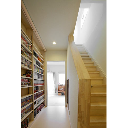 本好きなS様ご家族の大切な漫画のコレクションも、壁面を利用して場所をとらずにまとめて収納。今後もコレクションを増やしていける余裕が出来ました。
