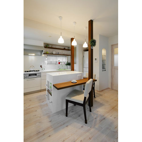 大きな家具は置かず、多機能なアイランドカウンターで来客をおもてなし。