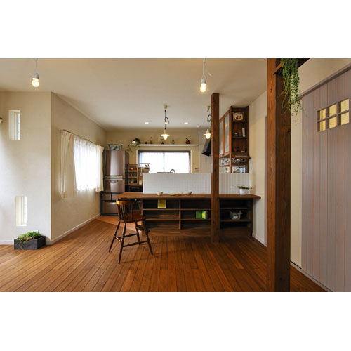 以前から雑貨などのお好みの小物を集めていらした奥様。「おうちカフェを楽しめるようなカウンターキッチン」「ご両親やお友達を呼べる広さにしたい」というご希望から、玄関を移動させて間取りを大幅に変更しました。