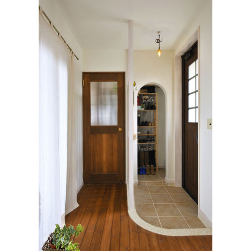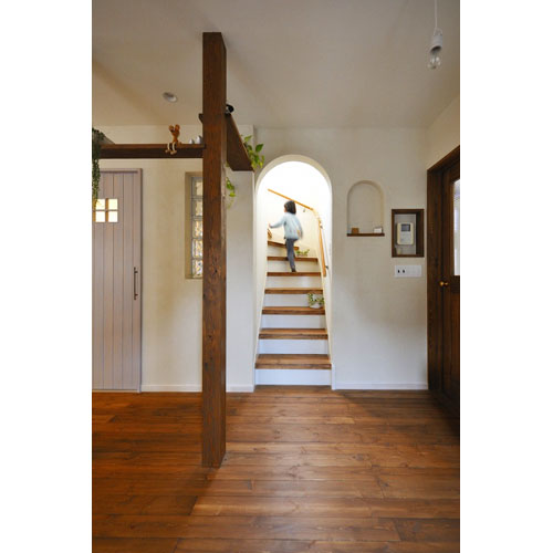 玄関や階段への入口、カウンターなどに、随所に丸みを帯びた部分を取り入れて、やわらかい印象のお家に。お二人の小さなお子様達がすくすくと育つお家にまあるいフォルムを取り入れることで、心豊かに成長してくれるように、との想いが込められています。