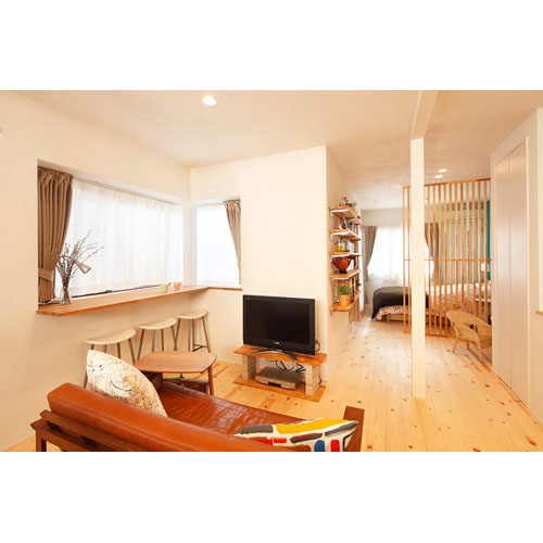 コンセプトは「2Fをワンフロアの空間に」。窓からの陽の光を楽しみながらくつろげるナチュラルカフェのようなLDKと寝室を、既存の住宅性能を活かしつつ、ひとつながりの空間にしました。
