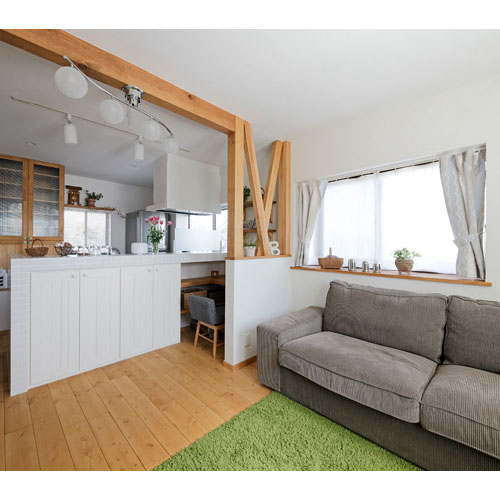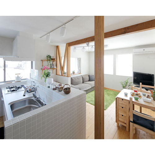奥様の実家で、一人暮らしをしているお母様を気遣い、2階部分をリフォームして2世帯住宅にして一緒に暮らすことに決めたU様ご家族。1階のリビングの吹き抜け部分を2階の床として取り入れ、2階に広々とした子世帯のLDKを設けました。