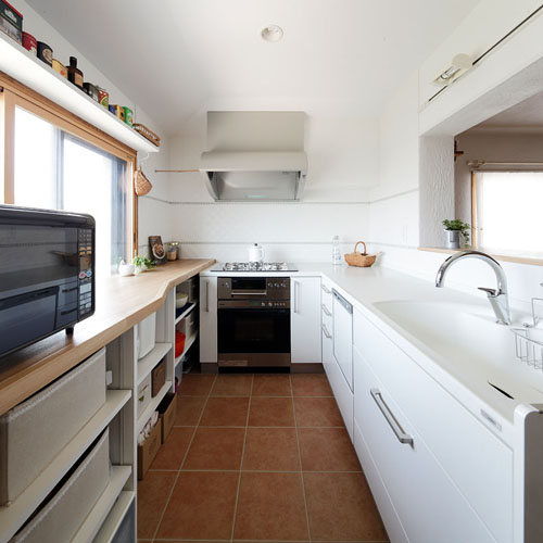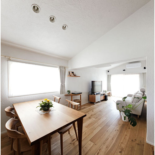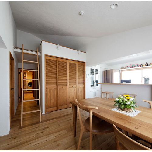 ロフトを造作し、収納容量も確保。無垢フローリング、珪藻土などの自然素材を使用するとともに、ガス式床暖房などを施工し、シンプルな素材感と柔らかなぬくもりを感じられる、ここちよいHOMEとなりました。