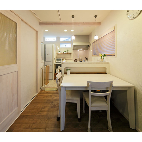 お子様が誕生されたM様ご家族。それに合わせて「狭くて暗く、奥様が孤独を感じてしまうキッチン」「2Fに離れたLD空間」「急な階段をなんとかしたい」とのお話から、リフォームのご依頼をお受け致しました。