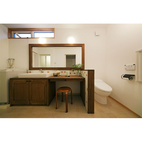 珪藻土や無垢材、自然素材は木の家具と優しく調和し、温もりのある雰囲気。