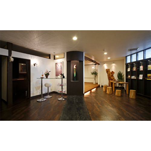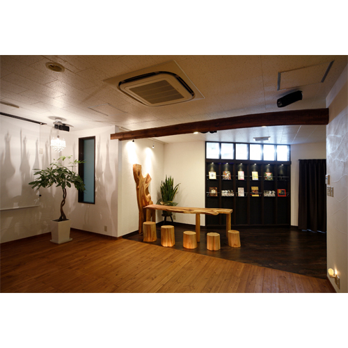 「妊婦さんのためのヨーガ・アロマスタジオ」ならではのデザインを盛り込み、珪藻土の壁には左官屋さんが書いた「子宮」があり、正面に貼り付けた銘木の模様は、まさに妊婦のお腹と子宮のような形をしていたりします。