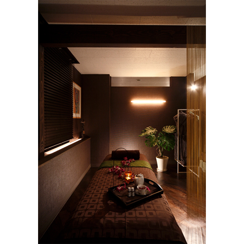 マッサージルームは、シックでアジアンラグジュアリーな雰囲気に。