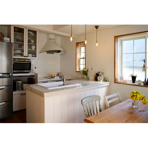 1階北側で暗く独立したキッチンを、思い切って2階の南側へ大移動。